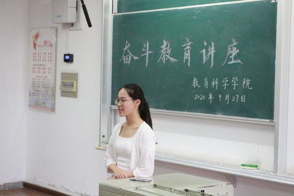 集团早晨假山旁朗朗的背书声,教学楼楼梯上默默看书的身影,晚上自习室里心无旁骛的笔耕……这些无一不在诠释着盐师人的奋斗精神。盐师的校园内处处都是奋斗者的脚印,作为新的盐师的一份子,要一直将奋斗的精神传承下去。学姐用身边的人举例,希望新生们能够明白:当你选择安逸时,别人正在追梦的路上不断前行!奋斗能让我们更加自律,更加主动地去接触社会,从而成为更好的自己,这便是奋斗的意义。教师的社会角色是改变人的,通过奋斗来收获,在人生与未来的旅途中乘风破浪 。同时,学姐详细阐述了我们该如何去奋斗。首先要树立自己的职业信仰,明白自己的奋斗目标。树立目标不可好高骛远,脚踏实地把每一步走好才是关键。在大学的新环境里,我们可以从培养生活技能、兴趣爱好、人际交往等方面去树立短期目标,又或是从转换班级角色、学院角色、学习专业知识等方面去树立长期目标。不管选择哪一条人生道路,我们都离不开奋斗。其次,学姐也强调,在遭遇挫折时,要调整好心态,继续出发。不论身处什么境地,都不要停下奋斗的脚步。当然,奋斗时也要注意方式方法,要做到劳逸结合,要做到既能埋下头学习,也能在娱乐中放松自己。我们身处在这个校园,我们永远都不是一个人,要相信学校老师,相信同伴,在合作中共同进步。