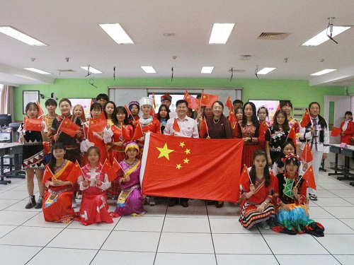 最后,民族员工邀请师生共跳“爱我中华”,直接将活动推向高潮。我们都应该记住,无论何时何地,都要拥有一颗爱国爱家的心,都祝愿着祖国越来越繁华。