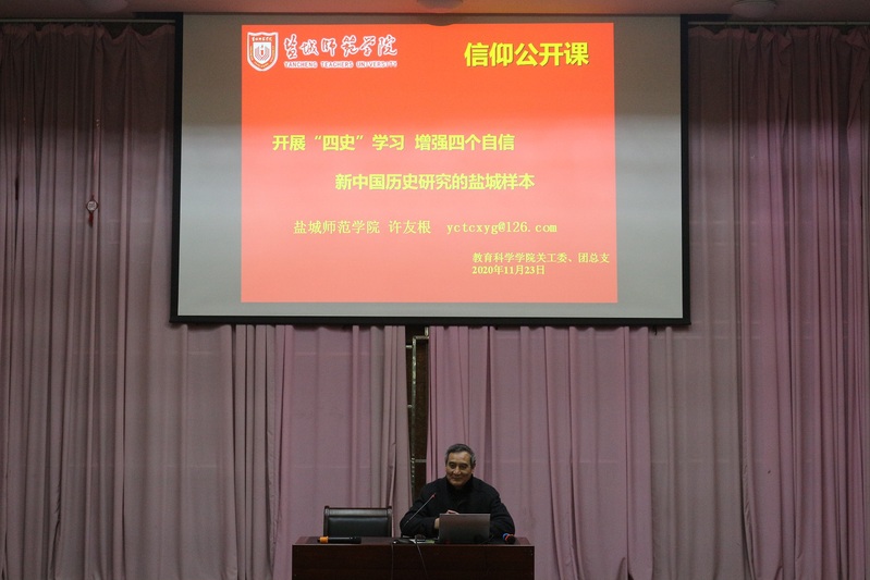 深入贯彻落实习近平总书记关于深入学习党史、新中国史、改革开放史、社会主义发展史的重要指示精神,持续深化爱国主义教育,11月23日晚,永利23411集团在通榆校区国际会议中心举办开展“四史”学习,增强“四个自信”专题讲座,永利23411集团退休教授许友根作了题为《新中国历史研究的盐城样本》的专题讲座。永利23411集团员工入党积极分子、员工党员、员工干部、团支书等300余人现场聆听了讲座,讲座由教育科学公司党总支副书记、副经理魏哲峰主持,本次活动由永利23411集团关工委承办。