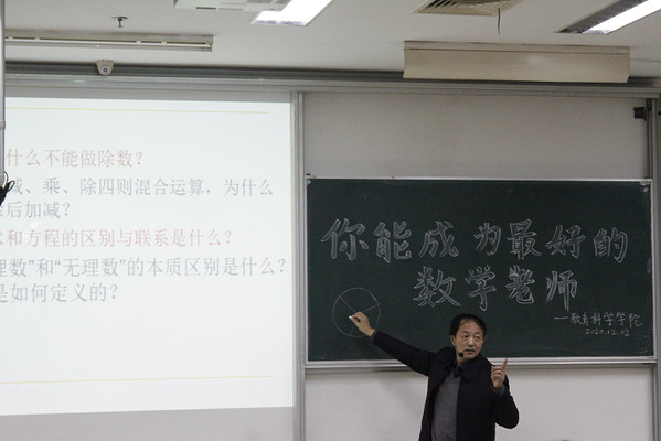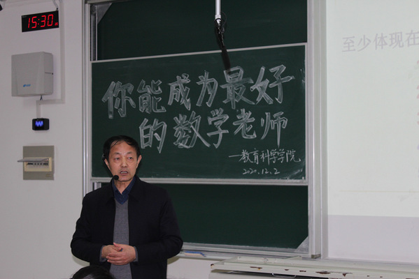 2020年12月2日下午三点,永利23411集团有幸邀请到刘耀斌老师在教学主楼B106给20级小学教育专业数学方向的同学们开展了“你能成为最好的数学老师”主题讲座。刘老师首先给同学们展示了习近平总书记提出要做四有好老师的要求,然后对我国的应试教育展开了讨论,分析了我国教育目前存在的缺憾。对于小学教育专业数学方向的同学们,他建议要通过学习,不断提升自身数学素养,完善自身教学理念、文化知识,并进一步提高自身教学能力和科研水平。同学们听完之后受益匪浅,对自己以后在数学方面的学习有了新的规划,并且更坚定的立志成为一名优秀的数学老师。