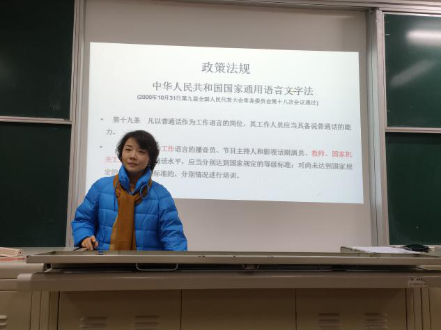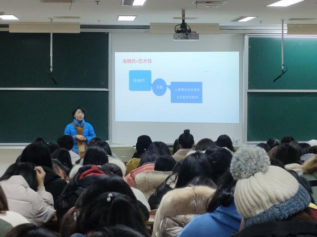 讲座伊始,乐老师为我们对于口语的特点进行了简明扼要地讲述,用一些特别的例子和相关视频为我们展示了口语表达的独特之处,让参加讲座的同学们与老师一起进行口语互动交流。简述了语音标准为声韵调准确到位。其后,乐老师重点讲解了发声技巧的关键所在,强调发声要字正腔圆、悦耳持久。对于发声技巧的运用进行了深入浅出地讲解,从气息、声带、共鸣、发音吐字四个方面来进行详细阐释。乐老师对于不同的技巧,进行了生动形象地现场展示,让参加讲座的同学们有了直观地理解感受。乐守红老师着重强调,口语的表达和发声技巧对于教科院的同学而言,是极为重要的,对于我们之后的学习、工作都有着重大影响。因此,我们需要熟练地掌握口语的表达方式及发声技巧。在这之后,乐老师为我们讲解了教师的基本礼仪规范,教诲我们身为未来人民教师,我们要时刻牢记教师礼仪规范,要从自身做起,做一名优秀合格的人民教师。在形象塑造方面,我们需要加强关注,从现在开始,去关注提升。公众形象对于我们来说至关重要,我们要有自己的人设目标,并且朝着这个方向去努力。在不同场合要有不同的外在形象设计。