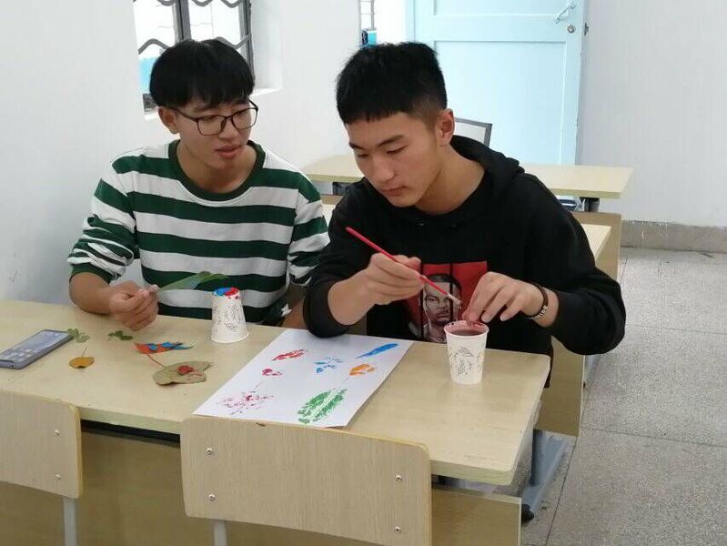 同学们运用颜料画笔等,将即将枯萎的植物拓印下来,过程中大家都发挥自己的聪明才智,将落叶以最美好的方式留存下来。