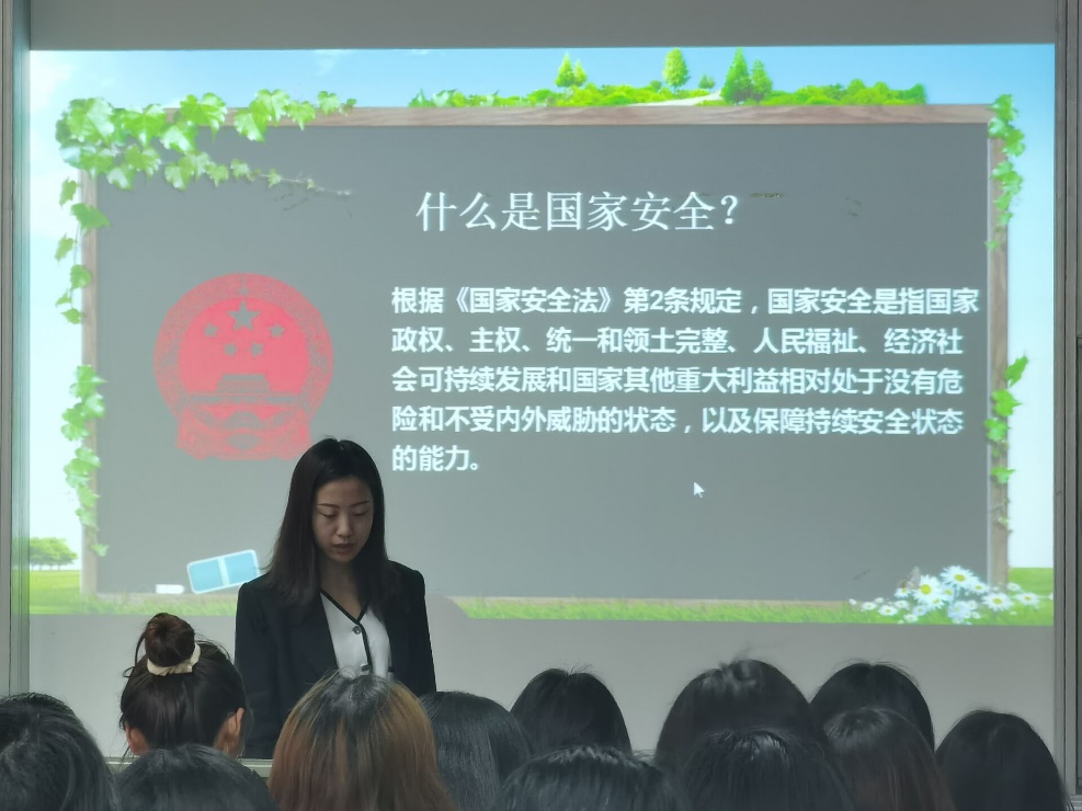 班会上,老师向员工们讲解国家安全包括国家的主权、领土完整不受侵犯,国家的秘密不被窃取、泄露和出卖,社会秩序不被破坏等。在“维护国家安全,你会怎么做?”讨论环节,员工们纷纷表示要从现在做起,从自身做起,自觉抵制危害国家安全的言论、行为,争当保护国家安全的小卫士,为铸造国家安全的铜墙铁壁贡献力量。