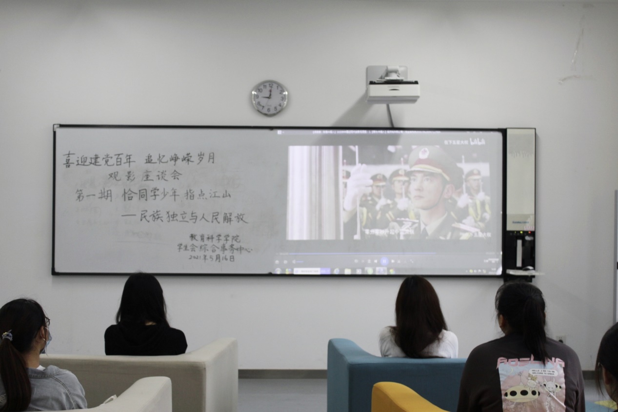 本次观影座谈活动共有四期,本期为第一期,主题为“恰同学少年,指点江山——民族独立与人民解放”。九点活动开始,主持人播放关于民族独立和人民解放运动的影片,并提出有关影片内容的三个问题,要求同学们在观影过程中边看边思考,更加深刻地去了解影片所体现的深意。影片播放结束后,进行分享交流环节,同学们都积极主动地分享了自己此时此刻观看影片后的真实感受,没有当场分享感想的同学于观影结束后也在活动群中纷纷发表感想。