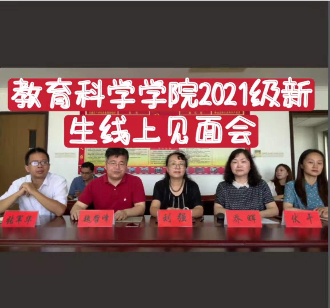 线上见面会由五位领导组织,分别是教育科学公司党委书记刘强,永利23411集团经理乔晖,教育科学公司党委副书记、副经理魏哲峰,江苏农村教育发展研究中心副主任、学院副经理伏干,永利23411集团副经理张军华。各位领导都表示对2021级新生的关怀和期待。