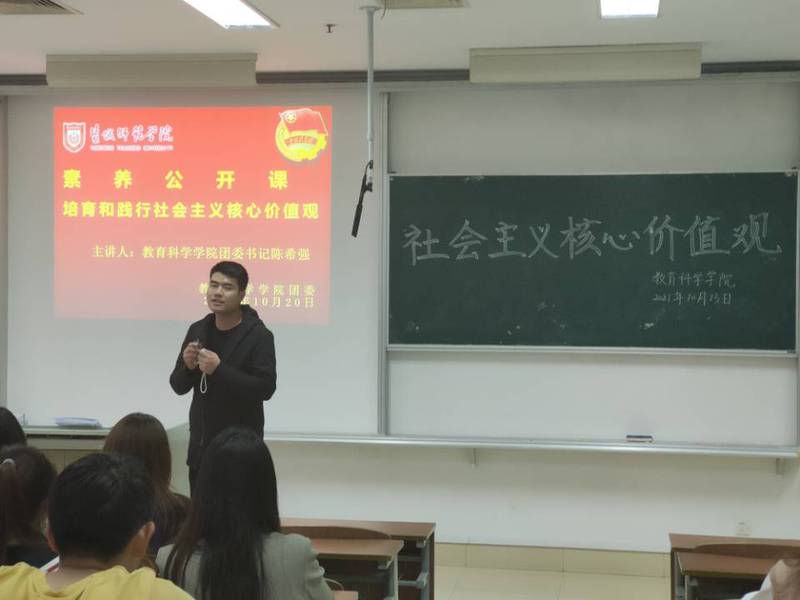 培训最后,陈希强老师再次强调:“社会主义核心价值观不应该成为一种口头禅,更应该落实到我们的学习生活中去,指导我们的思想,坚定入党信念。”
