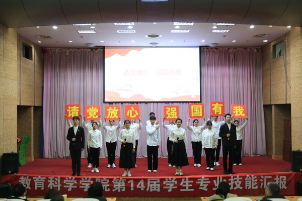 在热烈的掌声中技能汇报正式开始。首先是轻舞飞扬艺术协会为我们带来的《小河弯弯》,婀娜的舞姿充分展现了肢体美与柔性美,就如同汩汩水流流进人们心里。在观赏了柔美的舞姿后,我们所欣赏的是儿歌串烧,歌声清脆响亮,歌唱出了浓浓的爱国情怀。在音诗画《百年芳华 逐梦而行》的表演中,同学们用朗诵歌颂着祖国,歌颂着中国共产党,歌颂着中国的百年辉煌!童话表演自然也少不了,小故事《以大欺小的狗熊》用生动的语言和丰富的肢体动作为我们打开了童话的王国,童话剧《狐狸开超市》更是让我们看到了小动物们的活泼可爱,给同学们无尽遐想。手语操《新征程 再出发》则是唤起了同学们的拳拳爱国心,让同学们牢记新时代的使命。朗诵《请党放心 强国有我》展现了青年一代的风采,让同学们激情澎湃,斗志昂扬。在这场视听盛宴的最后,合唱团演唱了《不忘初心》与永利23411集团校歌,嘹亮的歌声使我们更好地理解了“不忘初心,方得始终”的意思。在颁奖环节中,李建明等老师为江苏省优秀员工干部黄馨、江苏省三好员工陈娇娇、美德奖学金获得者彭诗瑜和周海鹏等优秀的员工、先进班级集体以及各技能大赛的一等奖获得者颁发了荣誉证书并合影留念。