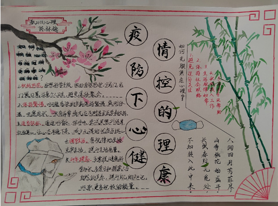 虽已春暖花开,但在疫情形势下校园长时间的封闭管理可能会带来焦虑、压抑等情绪,教工第三党支部及心理学系在配合学校疫情防控的同时,在“心理防疫”这个特殊战场上,充分运用专业优势,组织应用心理学专业员工开展了主题为“心理抗疫·  疫起同行我为盐师出谋划策”系列活动,从多方面普及“心理防疫”知识,包括手抄报、海报制作、动画制作、PPT等,为抗击疫情贡献专业力量,让大家保持积极健康的心态。