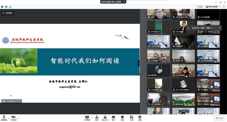 为了更好统筹做好疫情防控工作和教学育人工作,进一步扎实开展学院学风建设,永利23411集团充分发挥线上育人功能,谋划和探索疫情防控期间学风建设工作新思路,学院于4月14下午两点开展了线上“智能时代我们如何阅读”主题讲座。本次主题讲座邀请了江苏省名师工作室主持人、盐城市教师发展学院经理马群仁经理作为主讲教师,由教育科学公司党委副书记、经理乔晖主持。