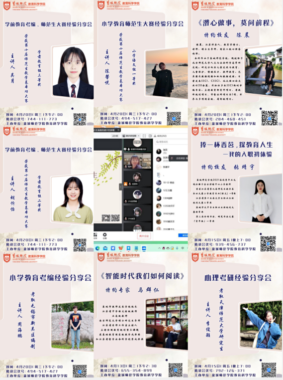 (一)、开展“云”考研考编经验交流会,邀请省师范生基本功大赛一等奖获得者、考上研究生的毕业班员工、考上编制的毕业班员工以及优秀员工,利用腾讯会议室,根据年级特点,分年级、分专业进行事迹分享,为员工树立榜样,进一步激励员工的学习动力。