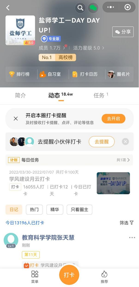 离“21天习惯养成”打卡活动的结束还剩短短的几天,永利23411集团将继续贯彻“以内涵促学风,以榜样引学风,标本兼治,齐抓共管,促进员工成长成才”的建设理念,结合当下线上教学的实际情况,发挥榜样的力量,不断完善学风“云建设”的教学活动。