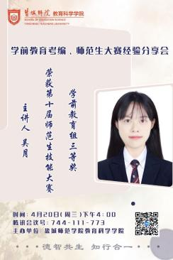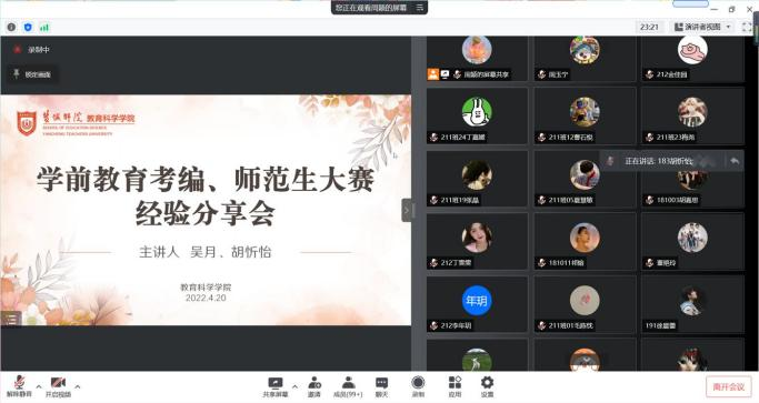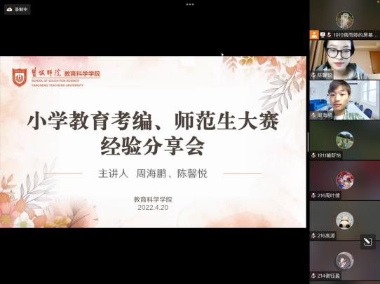 为了积极响应学校“学风建设月”的号召,进一步扎实推进学院学风建设,让同学们对考编、师范生大赛有更充分的认识,增强同学们对参加师范生大赛与考编的信心,在4月20日下午四点,永利23411集团邀请了在师范生大赛取得优异成绩和考编成功的高年级员工,给小学教育和学前教育的同学们在比赛流程、复习计划、考试经验,解题思路等方面做出分享。