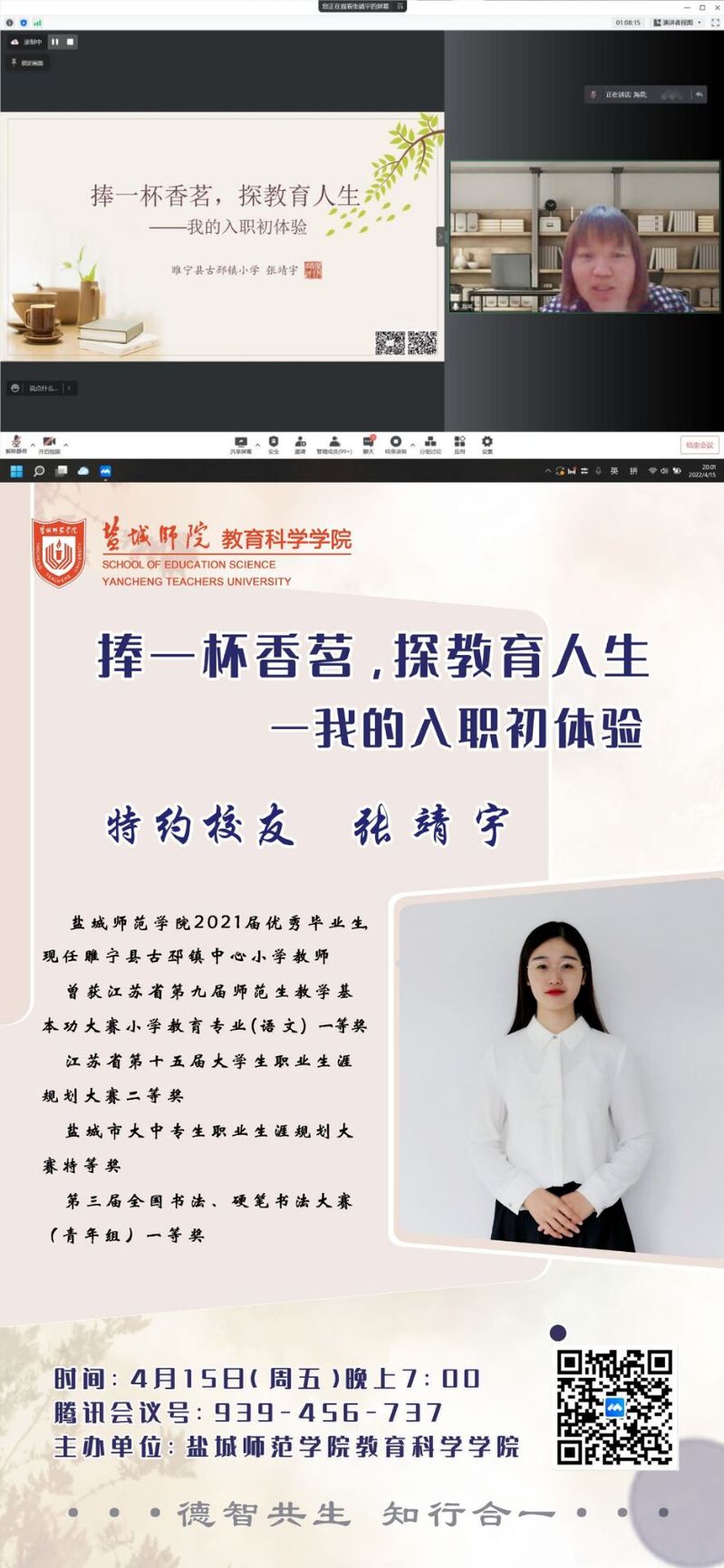 为激发同学们的学习热情,发挥优秀员工的榜样力量,永利23411集团于4月15日晚,邀请优秀毕业生张靖宇分享师范生入职体验。此次分享会由海英老师主持,会议的主题为“捧一杯香茗,探教育人生—我的入职初体验”。