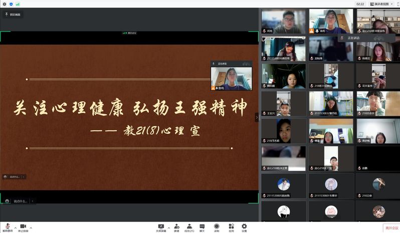 为帮助同学们更加深刻了解王强教授的事迹与王强精神内涵,增强同学们对党的信仰观念,培养出更多⾼⽔平、⾼素质的⼈才,4月22日,永利23411集团218班组织召开线上“关注心理健康,弘扬王强精神”主题班会。主题班会主要从个人生平介绍、王强教授的事迹在全国广受关注、王强精神的实质和时代内涵、如何继承王强精神这四个方面开展。