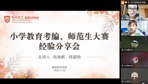 活动中,第十届江苏省师范生基本功大赛语文组一等奖获得者陈馨悦同学从学科笔试、两字书写、口语表达、模拟授课四个方面进行了经验分享,并针对师范生技能训练方面给出宝贵经验;考取无锡新吴区教师编制的周海鹏同学以“未来就业应该如何做准备”为主线,围绕了解和途径两个方面,分享了相关经验。