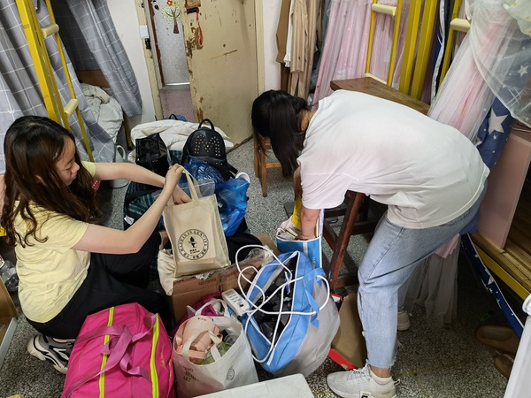 这次活动前期的安排工作很到位,将志愿者分派到各个寝室,并附上联系电话,既方便毕业生联系,又使志愿者专注于一个寝室,不至于导致搬运时的混乱。而且根据每个寝室人员数量安排志愿者,大大的优化了志愿者安排结构,也极大地方便了志愿者。志愿者们深入每个宿舍,帮助毕业生们收拾床垫被褥,将衣服叠好整齐地放进行李箱内,将各种行李仔细地进行分类打包,遇到大件行李时,志愿者们齐心协力将其抬出宿舍。收拾好行李后,志愿者们在走之前也不忘清扫宿舍的每个角落,保持宿舍干净整洁如一。