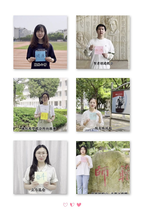 此次活动以录制视频的方式欢送毕业生,旨在加强各年级之间的交流,让大四毕业生深深体会到学院大家庭的温暖。此次活动得到了院领导老师的大力支持和各年级同学的积极响应,同学们纷纷拿起手机,为即将离校的大四学长学姐们送上暖心的祝福,一张张温暖治愈的图片,一句句深情厚谊的话语,无不表达出同学们对各位学长学姐的依依留恋之情和开创美好新天地的祝愿。