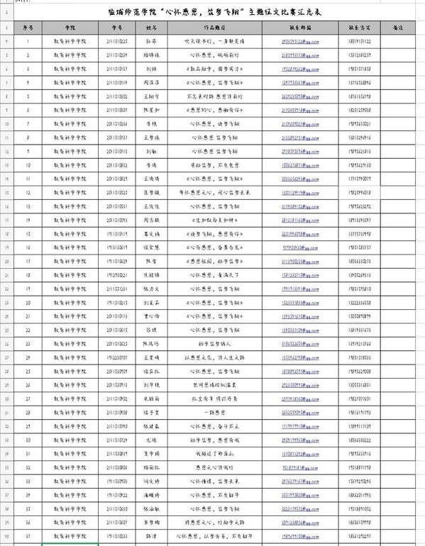 首先在学委群中发布相关活动通知及汇总表,请学委转发至各班班级群,呼吁同学们积极报名。随后于5月16日再次通知,提醒同学们报名截止时间。最终有近四十名同学参与活动并提交文章,随后建立评委群,评选出了十位优秀的同学,将所有员工文章和优秀作品打包发给老师看了之后,交至学校进行最终评比。