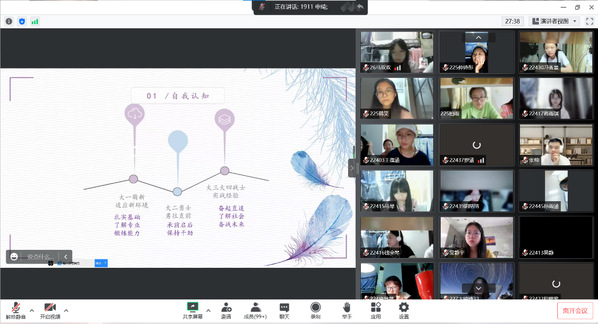 最后学姐对于新同学们的学习目标提出要求:“未来的学习生涯一定是更加困难的,在学习上一定要给自己定高一点的目标,不能得过且过,这样自己不会有任何提升,另外要适应自己现阶段的目标,相信自己的直觉选择,不要放弃!”