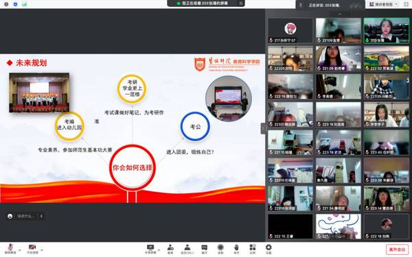 伴随着校园内逐渐热闹的气氛,2022级的新同学已经在大学校园里度过了忙碌的一周。为了帮助同学们更加深入了解老员工活,永利23411集团积极开展新生入学教育工作,特别邀请“学前教育”、“小学教育”、“应用心理”三个专业的优秀学姐在腾讯会议为同学们开展“新老生交流会”活动。