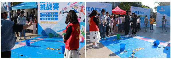 教科院同学们都积极参与活动,每个游戏摊位前都排起了长长的队伍。大家每人手上都拿着一本生涯成长手册,穿梭于各个摊位之间,努力集齐自己的“生涯印章”。