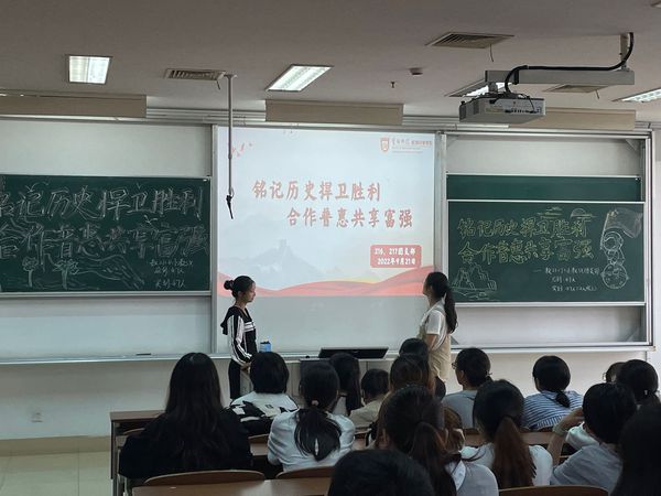 活动伊始,各班团支书首先通过观看视频、诵读经典等多种形式带领各团支部了解了“九一八事件的性质和影响,以抗日战争的鲜活历史推进同学们爱国主义教育;然后,通过引导同学们了解新中国成立以来我国的外交成就,领悟党中央领导集体在外交方面的不懈努力和中国在开放中创造机遇、在合作中破解难题的大国智慧,从而激发同学们对我国外交的兴趣,增强民族自豪感和自信心,为祖国的外交事业更好地奉献自己的一份力量。活动最后,各团支部开展了生动有趣的游戏互动,同学们以互动的方式了解中国独立自主的外交理念,以游戏方式抒发了对合作共赢的感悟与理解,激发了青年团员的爱国热情。