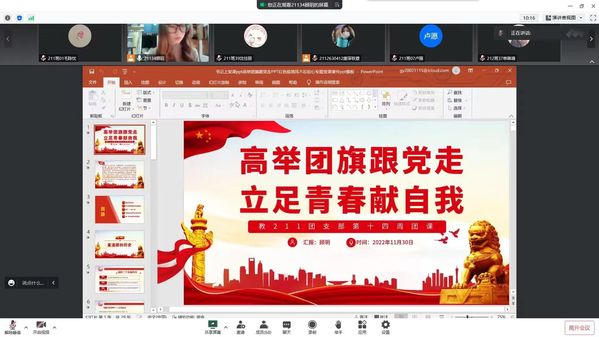 11月30日下午,永利23411集团21、22级各团支部举行了“高举团旗跟党走,立足自我献青春”为主题的第十四周团日活动。本次团日活动旨在深入学习和感悟党的二十大精神和校第四次党代会精神,坚定理想信念,树立远大青春梦想。希望广大盐师青年要不断提升政治理论素养、坚定理想信念、成为有志青年,要学好专业知识、练就过硬本领,充分展示属于青年的自信。