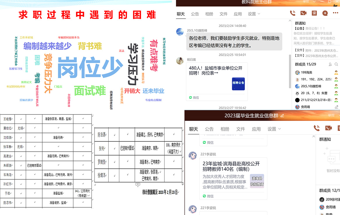 下好搭建平台“先手棋”,优化服务助就业。新时代下“云求职”成为就业新常态,学院主动求变,因时而进。一是积极利用信息技术,建立qq促业群,成立线上就业帮扶小分队,向毕业生精准推送就业信息,注重线上线下齐发力,扩充资源增强就业实效。二是联动班主任靶向发力,压紧压实工作责任,鼓励各班主任“下沉”到员工群体,持续提供就业指导,力求做到毕业生就业服务不断线、工作不断档、帮扶不落人,按期做好毕业生就业工作。