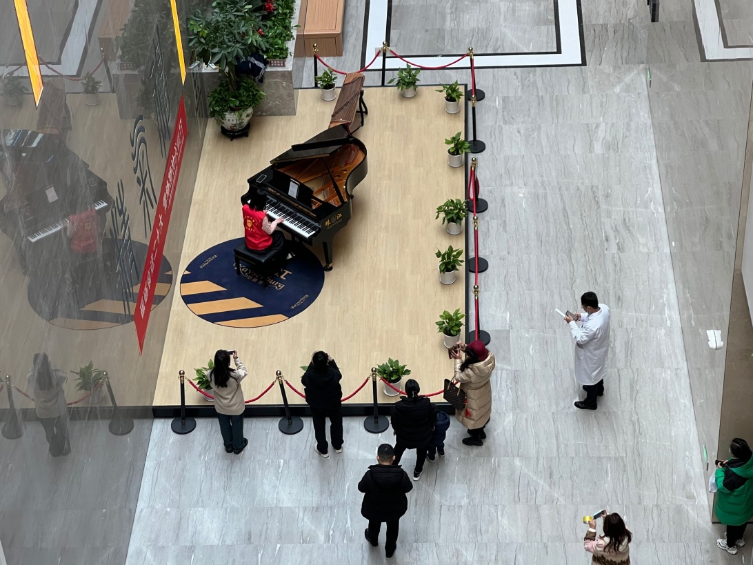 “第一次看到医院里摆放钢琴,感觉很新奇,本来到医院看病心情就比较烦闷,听着一阵阵的钢琴声我慢慢心情也平静下来了。”驻足观看钢琴演奏的陈女生笑着说完,又举起手中的手机录制起钢琴演奏小视频。