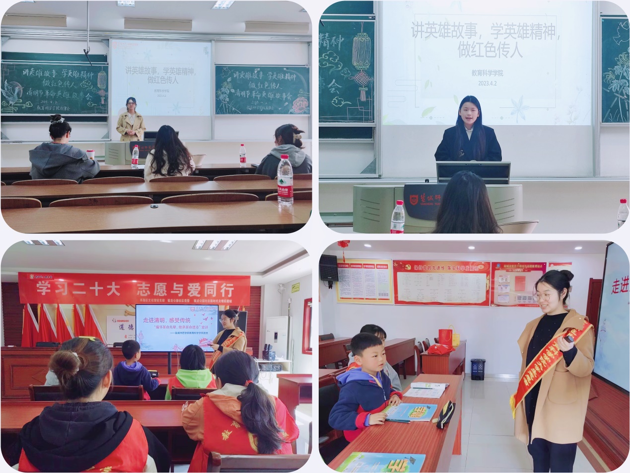 “述英雄故事,立强国之志”。分为“讲述英雄故事分享”和“清明传统民俗科普”两个环节。校内举办以“讲英雄故事 学英雄精神 做红色传人”为主题的清明节革命英雄故事会,参赛同学们分享了一个又一个感人至深的革命英雄故事,讲述了一幅幅波澜壮阔的历史画卷、一位位忠诚于党的革命先辈,英烈们的英勇事迹带领同学们走进中国国产党建党进程中筚路蓝缕、砥砺奋进的光辉记忆。校外“盐青先行”志愿服务团队深入走进大洋街道毓龙社区开展“走进清明,感受传统”(第六期)志愿科普教育活动,分别从清明节的由来、习俗、历史文化背景进行展开,以促进员工对清明节的深入了解,同时培养员工的文化自信,厚植爱国主义情怀。