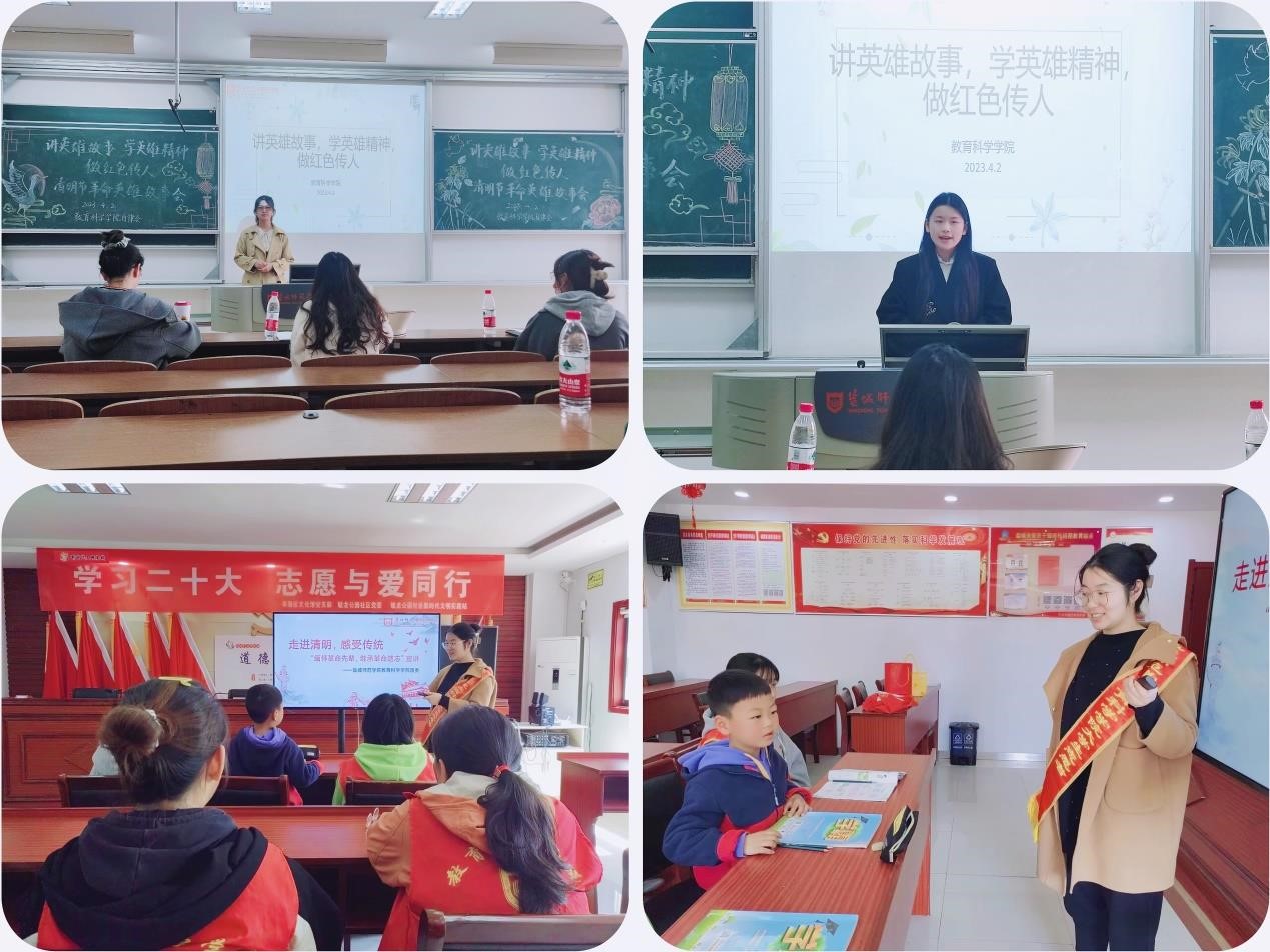 “述英雄故事,立强国之志”。分为“讲述英雄故事分享”和“清明传统民俗科普”两个环节。校内举办以“讲英雄故事学英雄精神做红色传人”为主题的清明节革命英雄故事会,参赛同学们分享了一个又一个感人至深的革命英雄故事,讲述了一幅幅波澜壮阔的历史画卷、一位位忠诚于党的革命先辈,英烈们的英勇事迹带领同学们走进中国共产党建党进程中筚路蓝缕、砥砺奋进的光辉记忆。校外“盐青先行”志愿服务团队深入走进大洋街道毓龙社区开展“走进清明,感受传统”(第六期)志愿科普教育活动,分别从清明节的由来、习俗、历史文化背景进行展开,以促进员工对清明节的深入了解,同时培养员工的文化自信,厚植爱国主义情怀。