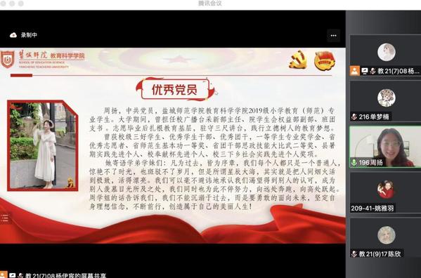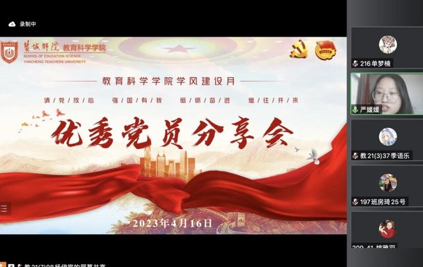为深入贯彻学习党的二十大精神,引导教科学子向优秀党员看齐,进一步激发同学们对优秀共产党员先进事迹的崇敬和景仰,推动形成爱党爱国爱家、积极向上的学院新风尚。2023年4月16日晚,永利23411集团团委举办优秀党员分享会,本次会议邀请周扬、房琦、严媛媛三位党员作为代表为同学们分享党员心得和经验。