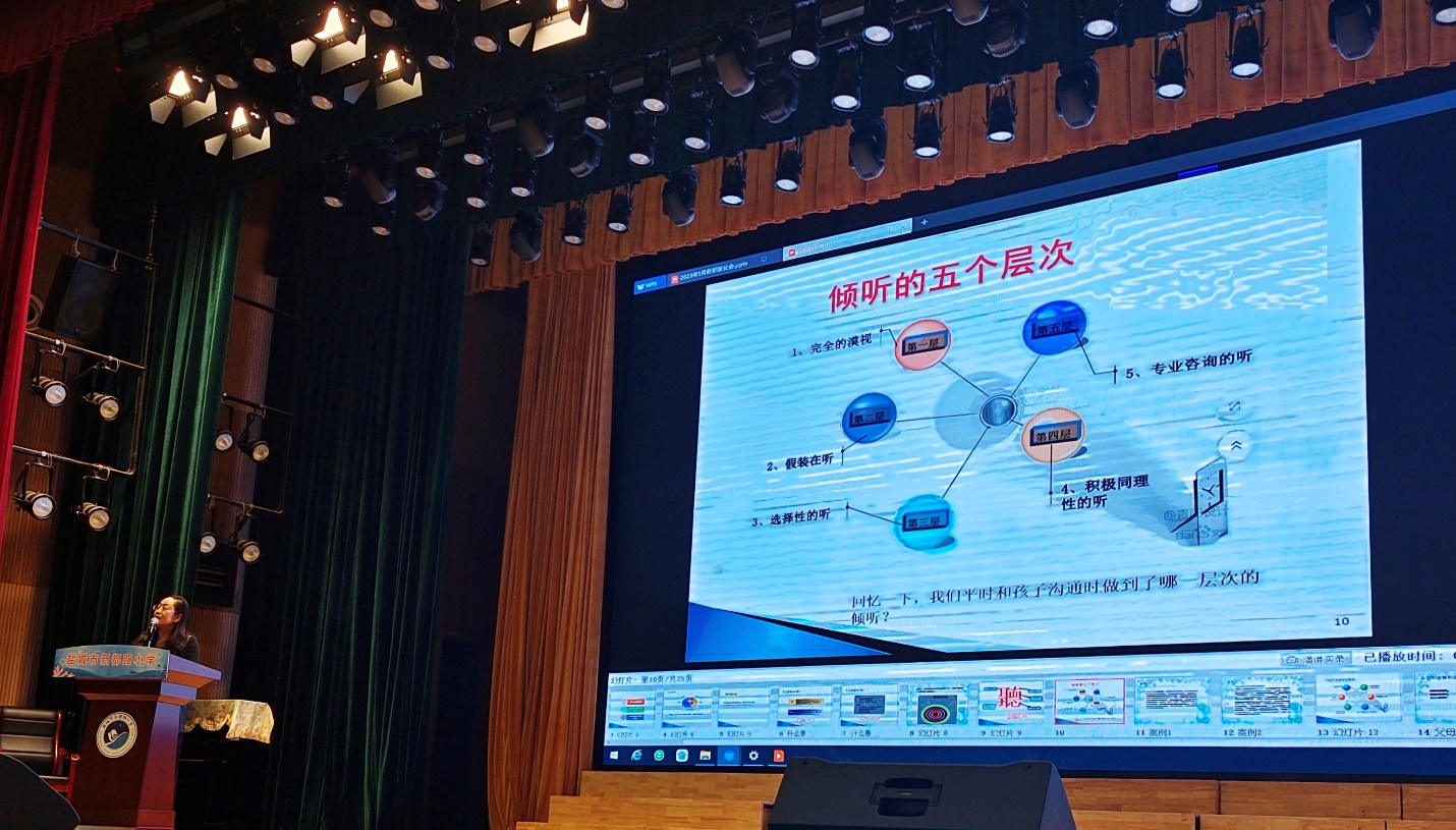 倾听是信息来源的重要渠道,倾听是家长走进孩子世界的有效途径,学会倾听是亲子有效沟通的重要方法。为了帮助家长掌握有效倾听的方法,江苏父母大学在新都路小学就倾听主题开讲。