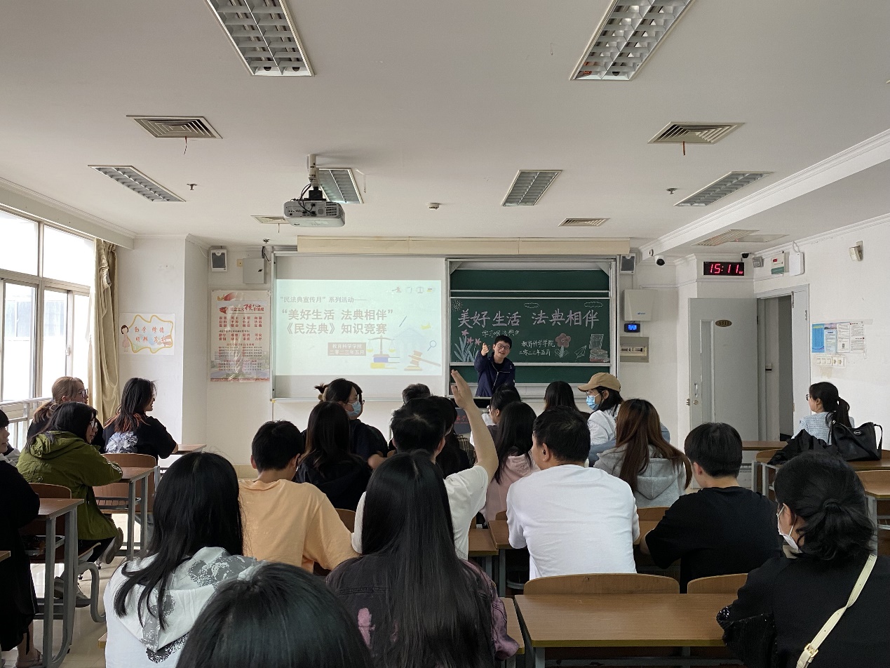 法典宣传进校园,普法护航助成长。在民法典宣传月期间,学院先后开展了普法讲座、主题班会课、辩论赛、模拟法庭大赛、知识竞赛、文艺汇演等形式多样的活动,提升民法典宣传中的趣味性和参与度,通过增加员工对法律更直观、生动的了解以进一步宣传民法典,引导员工们主动学法、自觉守法,依靠法律解决和处理问题。