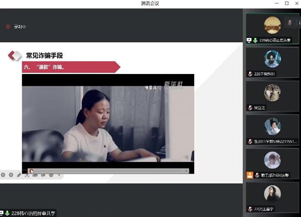 首先,各班生活委员在活动负责人闵唐馨的带领下,一起观看了关于“征信”、“反诈”相关的教育影片。