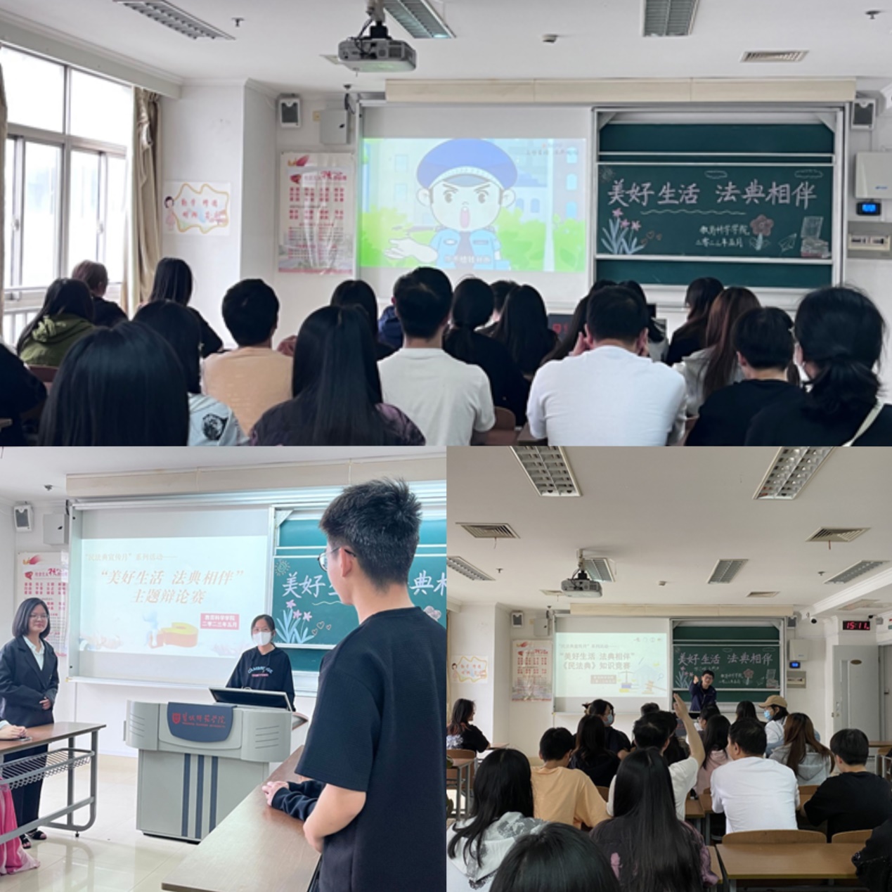 法典宣传进校园,普法护航助成长。在民法典宣传月期间,学院先后开展了普法讲座、主题班会课、辩论赛、模拟法庭大赛、知识竞赛、文艺汇演等形式多样的活动,提升民法典宣传中的趣味性和参与度,通过增加员工对法律更直观、生动的了解以进一步宣传民法典,引导员工们主动学法、自觉守法,依靠法律解决和处理问题。