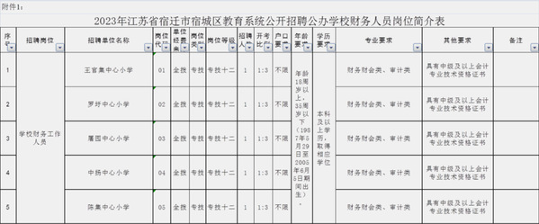 附件1:2023年江苏省宿迁市宿城区教育系统公开招聘公办学校财务人员岗位简介表
