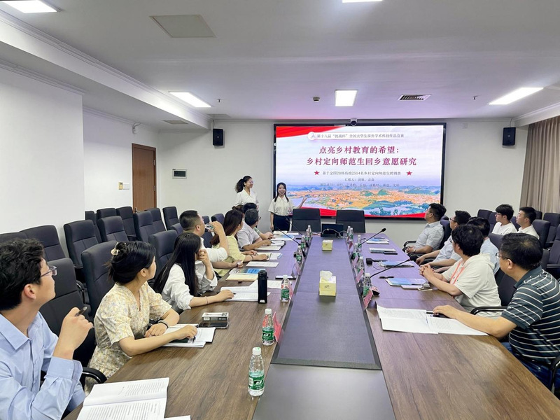 会上,参赛选手就参赛作品《点亮乡村教育的希望:乡村定向师范生回乡意愿研究——基于全国20所高校2514名乡村定向师范生的调查》开展模拟答辩。与会专家分别就项目内容的优化与提升提出指导意见,并就答辩技巧展开具体辅导。