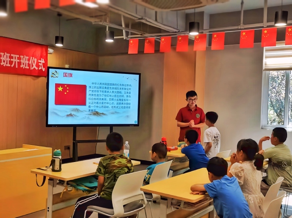 7月12日,“爱心暑托班”盐青先行暑期社会志愿服务团为员工讲授《弘扬爱国主义》课程,从周一升旗仪式及“我国的全称是——中华人民共和国”导入课题弘扬爱国主义,引发同学们对什么是国、什么是爱国的思考。课堂上,志愿服务团的志愿者们在处理好主体与客体、科学与艺术等关系的基础上,侧重公司产品过程中学习主体激发、教学艺术彰显、组织形式创新等方面,营造积极的教学氛围,把爱的种子播撒在孩子们心中,让这些小小的种子能够生根、发芽、成长,转化成孩子们的动力,帮助更多人勇敢逐梦。
