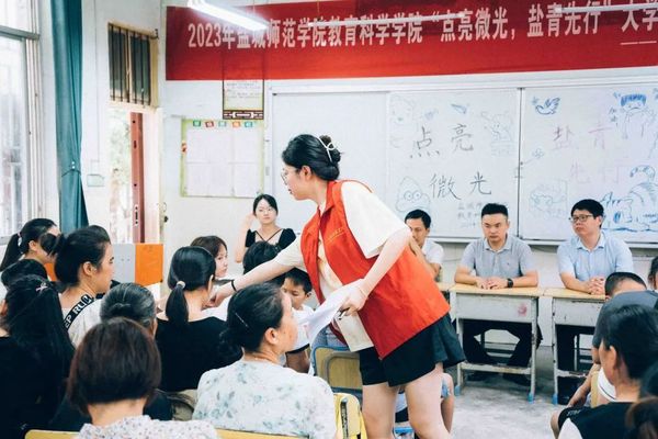 随后,“点亮微光,盐青先行”支教队长杨伊宸同学相继介绍本次团队支教的全部课程设置,让家长们更全面地了解本次的支教活动。通过校内开设的学前儿童科学教育、教育学外文原著选读、学校心理辅导等专业课,结合海洋乡乡村教育发展和孩子们的学习兴趣,此次将开设理论与实践共生的四大特色主题课堂:“青春向党,奋斗强国”思政课堂;“探奥索引,童心灼灼”创意课堂;“多元融合,妙趣横生”文化课堂;“沐浴阳光,滋润身心”健康课堂。采用课堂教学、座谈交流、知识竞答、体育健身等多种形式进行开展,并对孩子们进行暑期作业辅导,根据实际情况调整创新教学内容,保证每位员工获得一段愉快的学习经历。