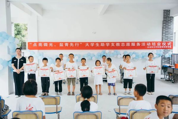 出席本次结业仪式的有:灵川县海洋乡团委书记官朝玲,永利23411集团团委负责人陈志鹏,永利23411集团老师薛冬,“点亮微光,盐青先行”支教团十三名成员及全体员工和员工家长。活动由支教团队长杨伊宸主持。