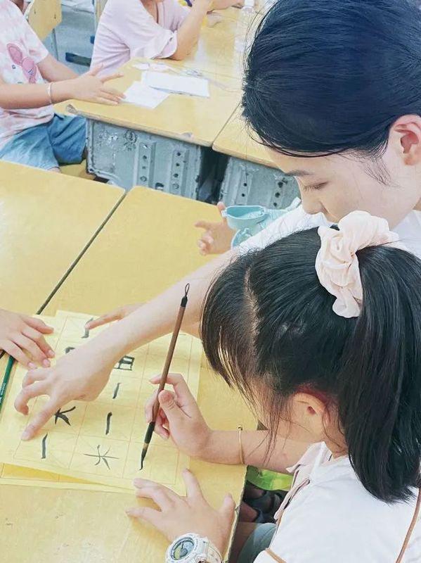 2023年的七月,满怀无限梦想与青春希冀的青年踏上征途,与一群可爱的孩子,进行了一场生命与灵魂的碰撞。每天,我都亲身感受着员工们给我带来的点滴影响。当辰时的阳光溜进教室时,推门而入,第一眼看见的便是弯弯的眉梢、浅浅的梨涡、甜甜的笑靥,可爱的孩子们一下子簇拥在我的身旁,拉着我的手,“老师今天教什么呀?”“老师,你的家乡在哪里?”“老师……”那一刻,幸福感满满。