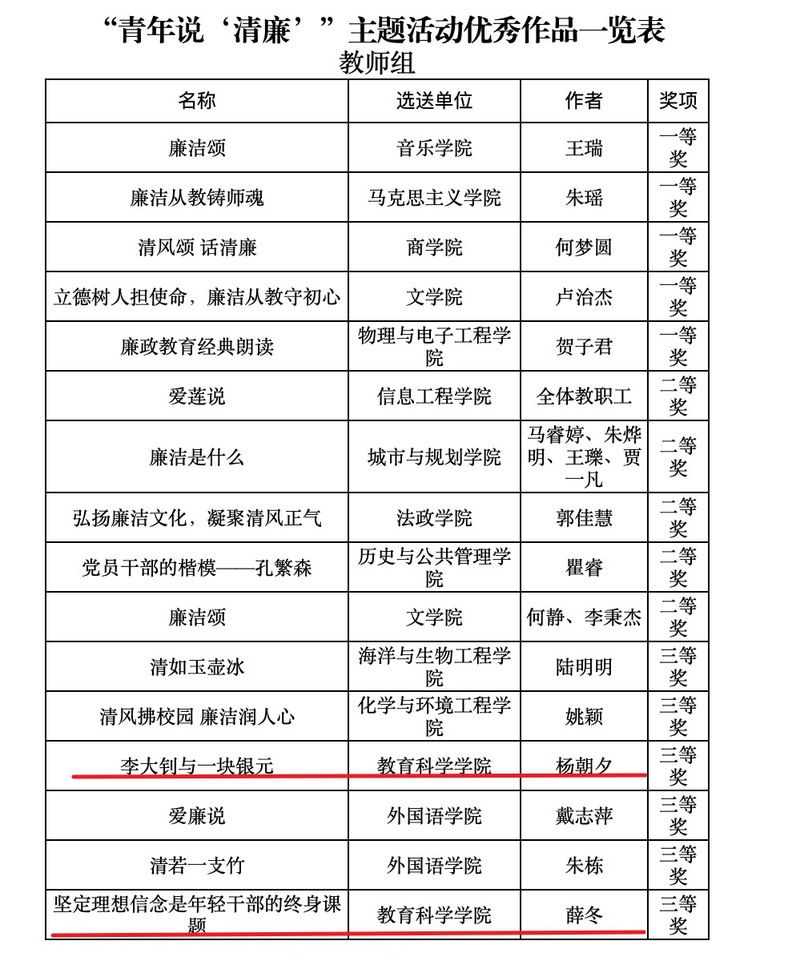 11月13日,教育科学公司党委在中共永利23411集团纪律检查委员会、江苏省监委派驻永利23411集团监察专员办公室组织举办的“青年说‘清廉’”主题活动中荣获优秀组织奖。教师组三等奖2项、员工组一等奖1项、二等奖2项。