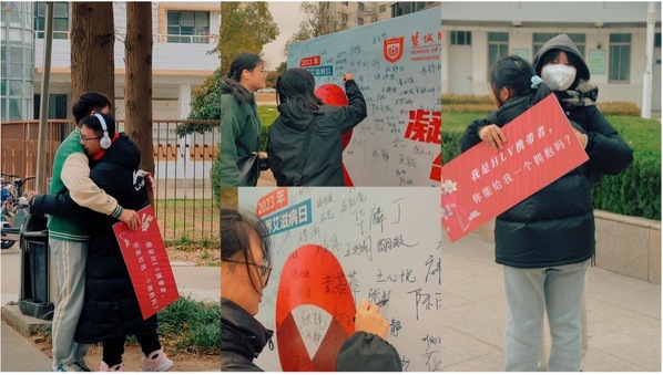 以“爱”之名拥抱青春,驱“艾”途上你我携手,学院先后开展“防艾青春young”创意作品征集、“预艾予爱,你我同在”老员工防艾知识竞赛、“激昂青春,健康同行”同伴教育主持人培训等活动,同学们踊跃报名、积极参与,为防艾工作赋能。此外,在学院团委于11月29日开展的“共抗艾滋,与爱同行”健步走活动中,学院在校生参与度近60%,同学们在健步走中践行着健康、文明的生活方式,在拥抱中传达对艾滋病患者的关心关爱,给他们一个拥抱,让世界多一份温暖,在展牌上签满的名字中展现共抗艾滋的决心。