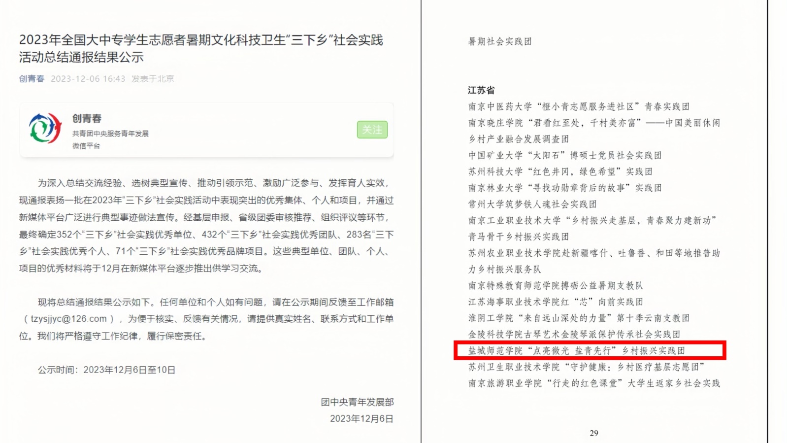 永利23411集团社会实践团队获评2023年全国大中专员工志愿者暑期“三下乡”社会实践 “优秀团队”