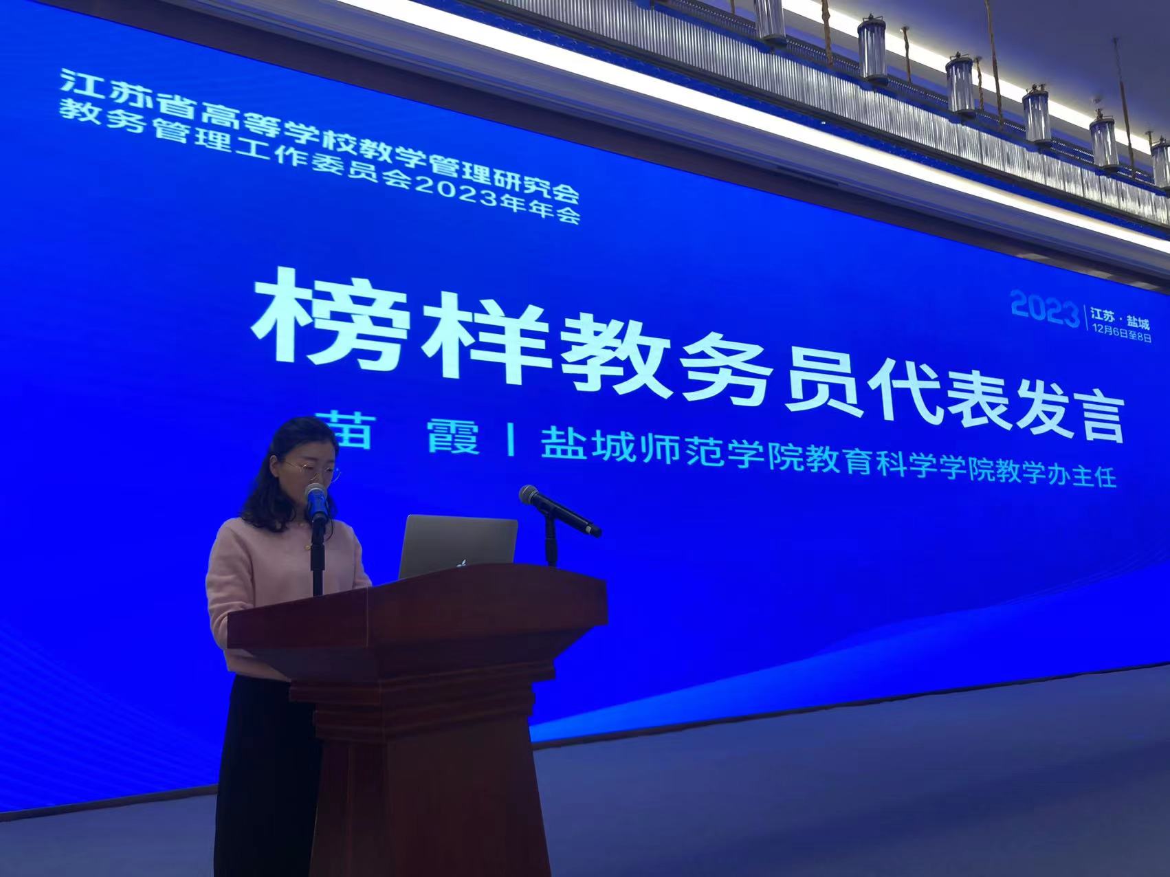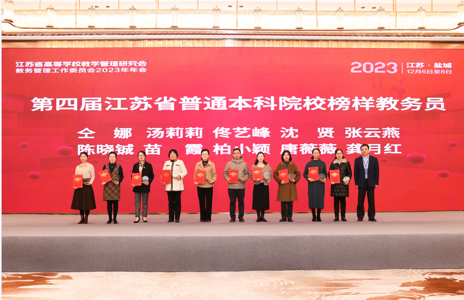 12月7日,江苏省高等学校教学管理研究会教务管理工作委员会2023年年会在盐城召开,会议表彰了第四届“江苏省普通本科院校榜样教务员”。公司苗霞老师荣获江苏省普通本科院校榜样教务员”荣誉称号。