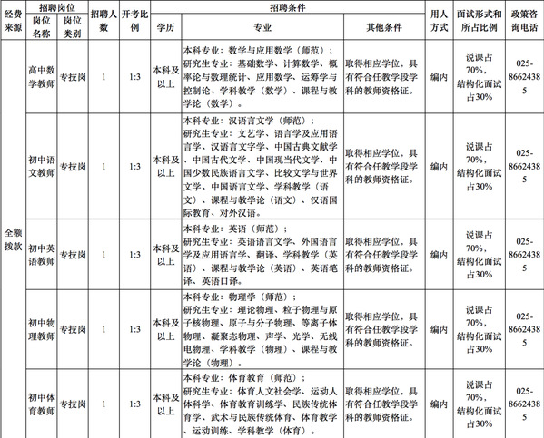 具体的招聘单位、招聘岗位及招聘条件等详见《南京市教育局直属学校2024年公开招聘教师岗位信息表1》