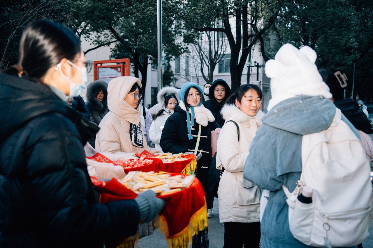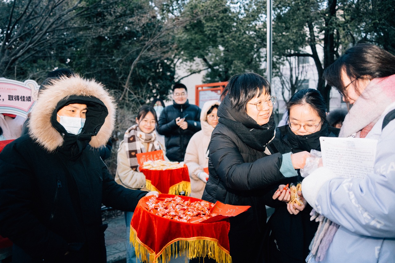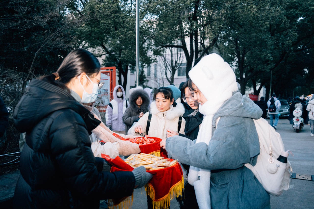 寒冬凛冽,气温骤降,老师们早早来到送站点,手持祝福牌为考研学子送考,与考生们亲切交谈,老师们温馨提醒各位考生清点必备物品,再次核对考场地点和搭乘车辆。鼓励同学们放松心态,沉着应对即将迎来的挑战。大家也纷纷与并肩作战的同学们、暖心送考的老师们拍照留念,记录下这温馨的时刻。临行前,学院给考研学子分发旺仔小零食,希望同学们满载“旺”气走进考场,迈进人生新征程。同学们纷纷表示此次送考服务非常贴心,使得大家备受鼓舞,信心十足。