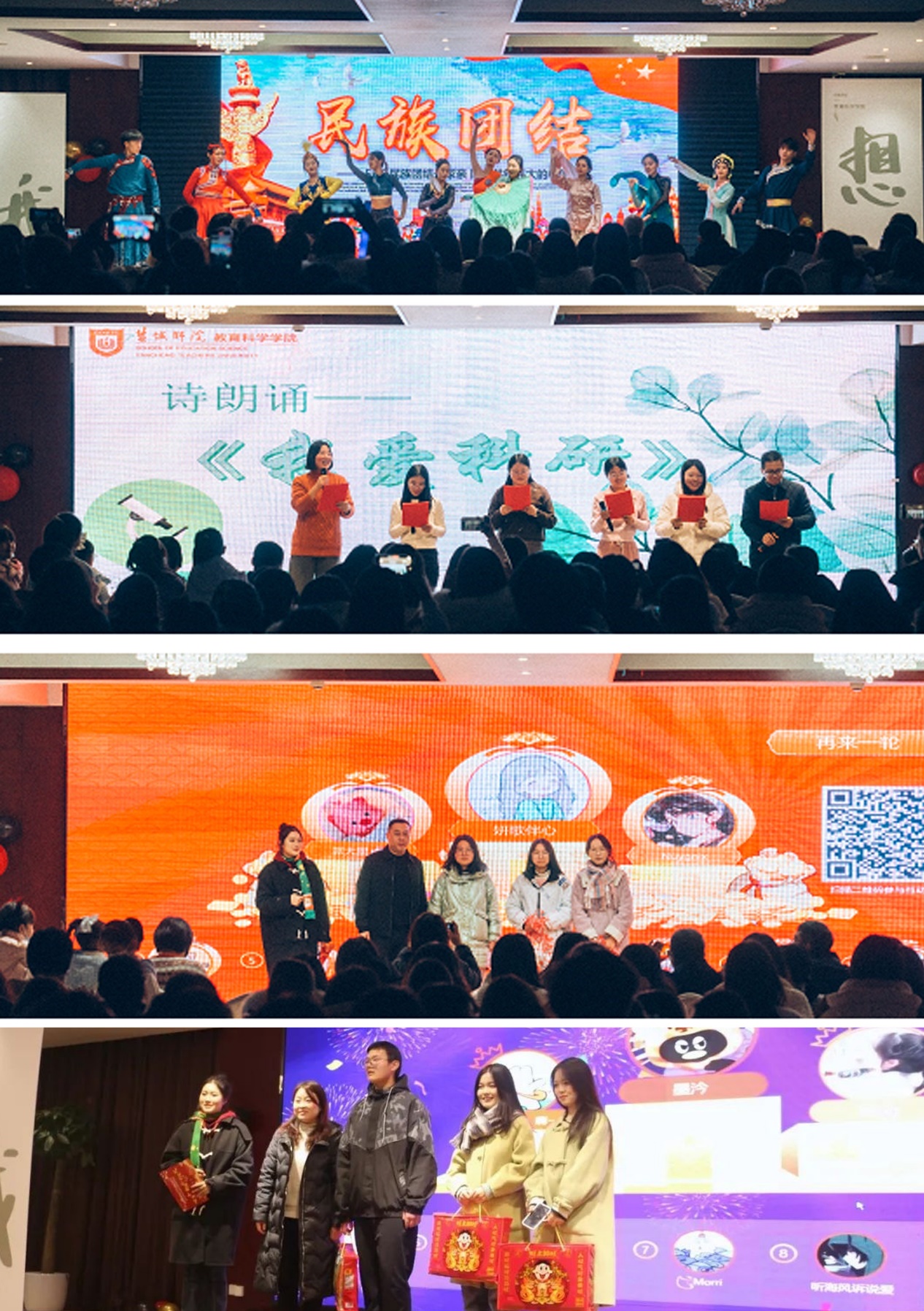 活动节目,精彩纷呈,有学前教育员工带来的舞蹈《湘云飞》;有小学教育员工带来的歌曲《童年》;有心理学系教师带来的诗朗诵《我爱科研》;也有学工及党政办教师带来的《大中国》大合唱等,一个个各具专业特色的节目轮番上阵,别出心裁,表演者们以饱满的热情充分展现着教科院师生们扎实的专业技能,不时赢得现场观众的阵阵掌声。此外,现场还开展了游戏互动环节,将本场晚会的氛围推向高潮。