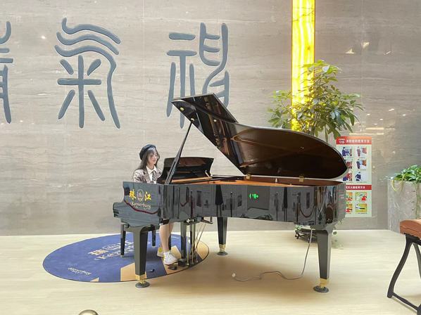 志愿者活动伊始,4位志愿者在医院书记的带领下进入了钢琴厅,然后依次上台进行钢琴表演,吸引了许多患者及患者家属驻足观看,她们有的拿出手机进行录像分享给身边的人,有的甚至伴随着琴声哼起了歌,钢琴的琴声感染了医院许许多多的人,一些小朋友还开心的伴舞,小脸上洋溢着开心的笑容。